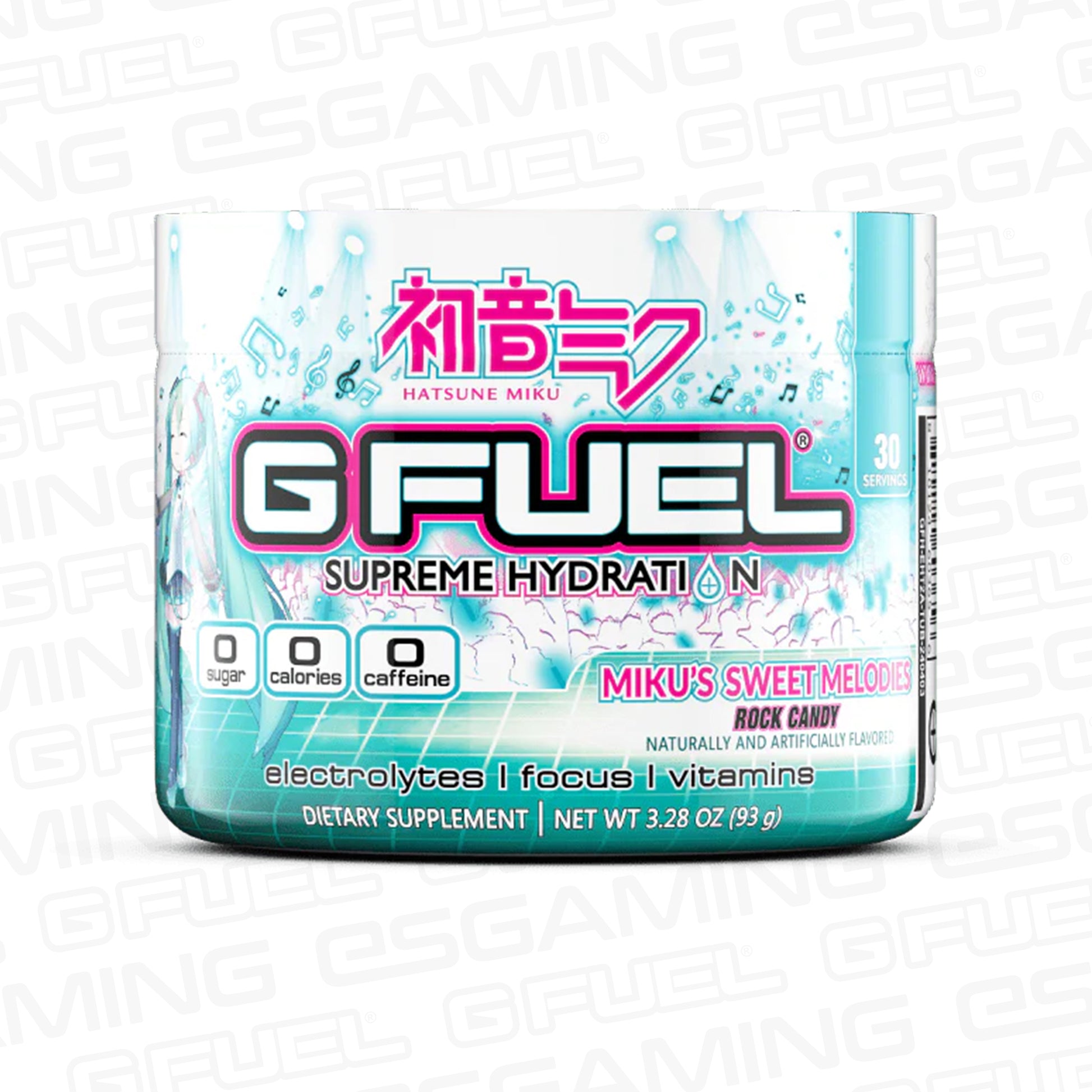 Whether you're a pop music sensation like Hatsune Miku or you're in the middle of an all-night gaming session, staying hydrated is important! That's why Miku teamed up with G FUEL to help her passionate fans refuel, recharge, and recover with her caffeine-free Supreme Hydration flavor, Miku's Sweet Melodies! This delicious blend of watermelon and strawberry has zero sugar, zero caffeine, and zero calories and is electrolyte enhanced and vitamin fortified to help keep you in the groove!