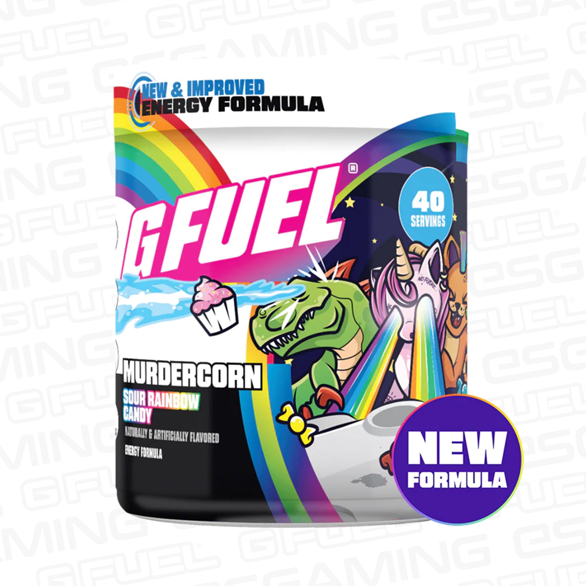 The uber-cute chaos of Murdercorn is back yet again, but this time their powers are in full destruction override with the new and improved G FUEL Formula 2.0! Are you plagued by that feeling of dread as the next work week approaches? Or perhaps all those assignments you’ve been putting off have now culminated into fears beyond comprehension!? That means it’s time to take a step back and let Murdercorn ease your mind and fuel your spirits because their shooting beams of sour rainbow candy annihilation will turn those dull days into something exciting! Murdercorn is packed with the energy-boosting antioxidants, focus-enhancing ingredients, and endurance support you need so you can lay waste to all that is boring, dive in, and fuel up on Murdercorn’s rage!