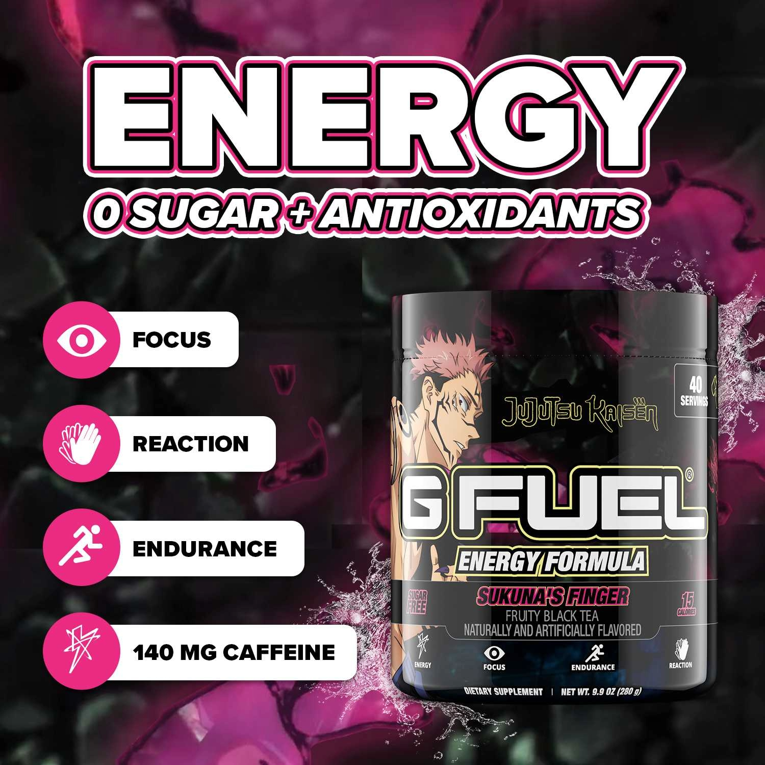 Whether you’re a casual gamer, a content creator, an everyday Joe, or an esports pro, G FUEL’s sugar-free, antioxidant and vitamin-fortified, focus-enhancing, and high-performance energy products will give you the edge you need to fuel your grind.